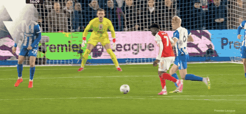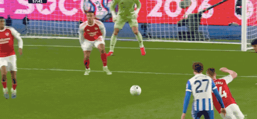 领先之后,比赛却并没有进入阿森纳的节奏。布莱顿展现出中游劲旅的硬度与韧性,高位逼抢层层推进,枪手的出球频频受阻。上半场除了一次赖斯的任意球高出横梁,进攻端几乎再无亮点。